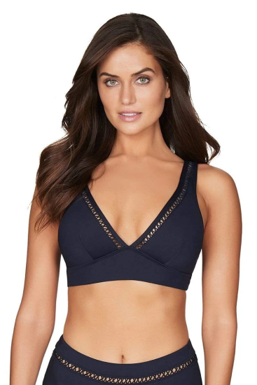 Sea Level - Lola Long Line Tri Bra bikini Top. Removable soft cups ,fits up to C/D cup, adjustable and convertible straps, adjustable back E-hook, side boning, Powermesh support.